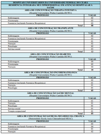 O Edital da RESIDÊNCIA MULTIPROFISSIONAL – UFC 2022 PSU-RESMULTI/CE – 2022 terá sua validade no período compreendido entre a data da sua publicação até 31/03/2022.