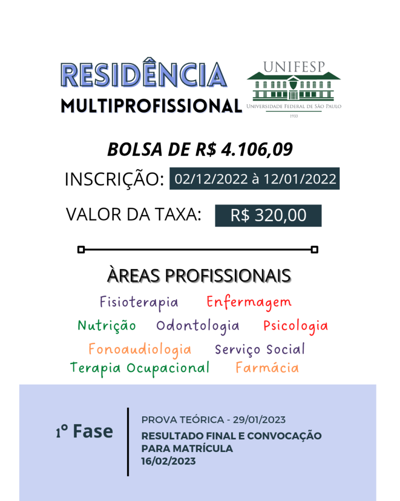 previstas para serem divulgadas a partir do dia 16/02/2023 no site https://www.unifesp.br/reitoria/proec/residencias/residencia-multiprofissional e Fundação Vunesp na
