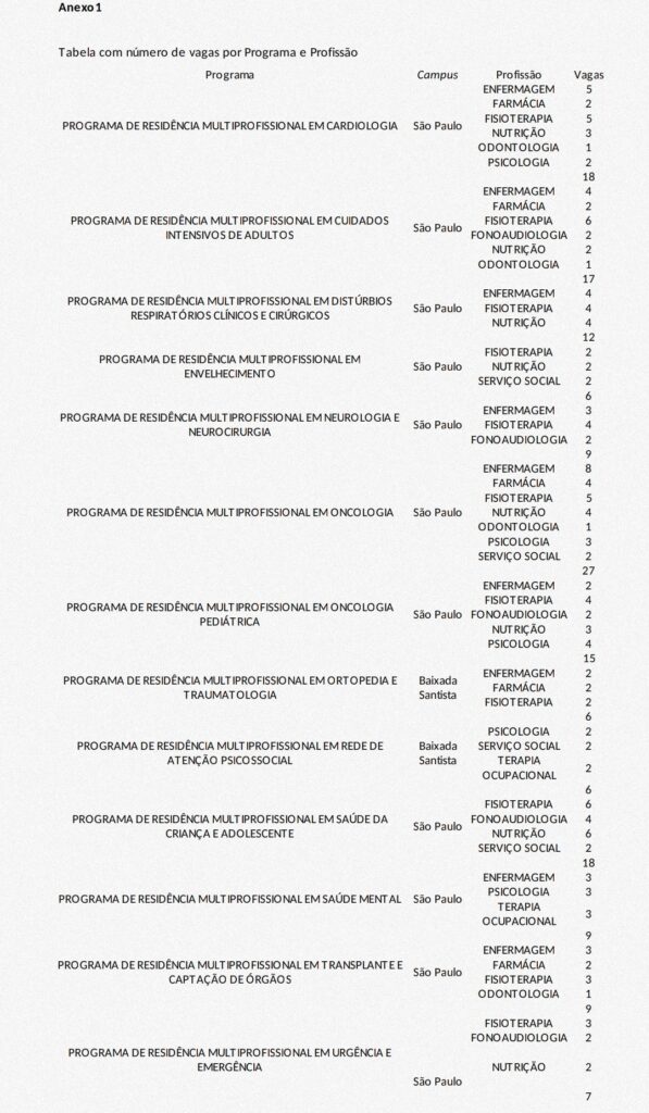 Quadro de vagas atualizado – Residência Multiprofissional UNIFESP