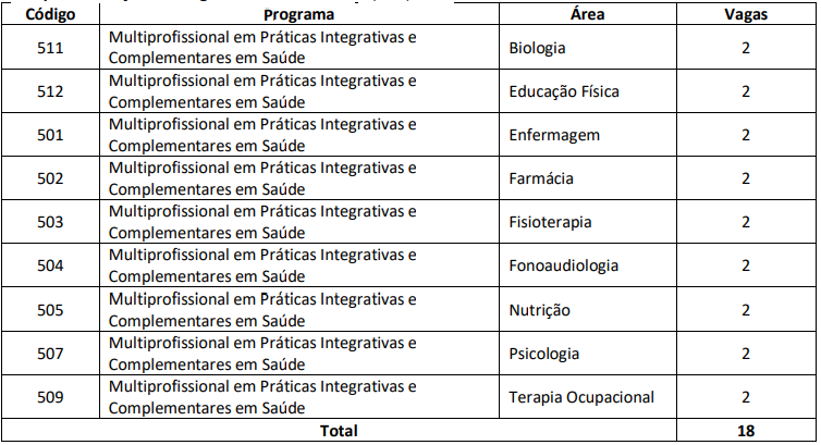 Descrição: atuar na Atenção Básica utilizando as Práticas Integrativas e Complementares em Saúde (PICS) devidamente regulamentadas e inseridas na Política Nacional de Práticas Integrativas e Complementares do Ministério da Saúde (PNPIC/MS), e desenvolvidas por meio de ações integradas e de caráter interdisciplinar, com enfoque nas bases conceituais e teóricas da medicina tradicional chinesa e da antroposofia aplicadas à saúde, e nos Recursos Terapêuticos como as plantas medicinais e as práticas corporais e meditativas, além das demais práticas reconhecidas ou que venham a ser reconhecidas pela PNPIC/MS, considerando a integralidade e a resolutividade das redes de atenção em saúde no SUS.